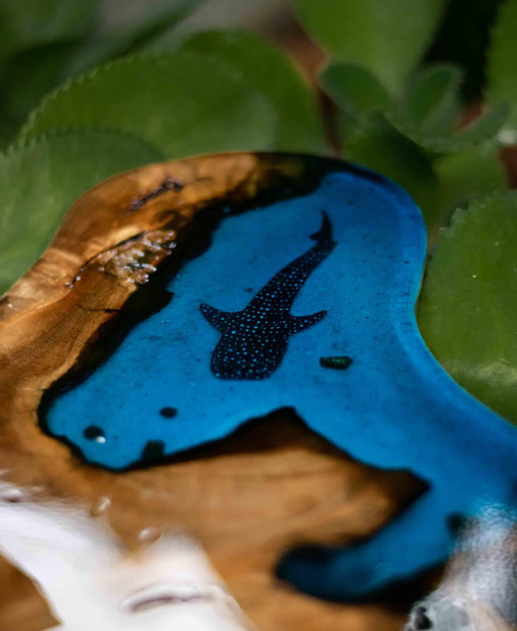 Meet our latest collection inspired by the beauty of Hanifaru Bay! Each piece is like a mini masterpiece, made with shiny finishes using epoxy resin and local wood.