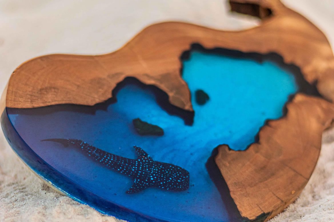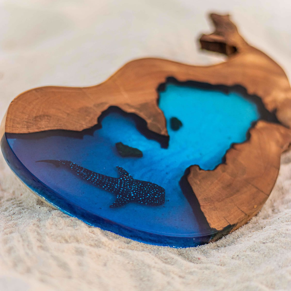 Meet our latest collection inspired by the beauty of Hanifaru Bay! Each piece is like a mini masterpiece, made with shiny finishes using epoxy resin and local wood.